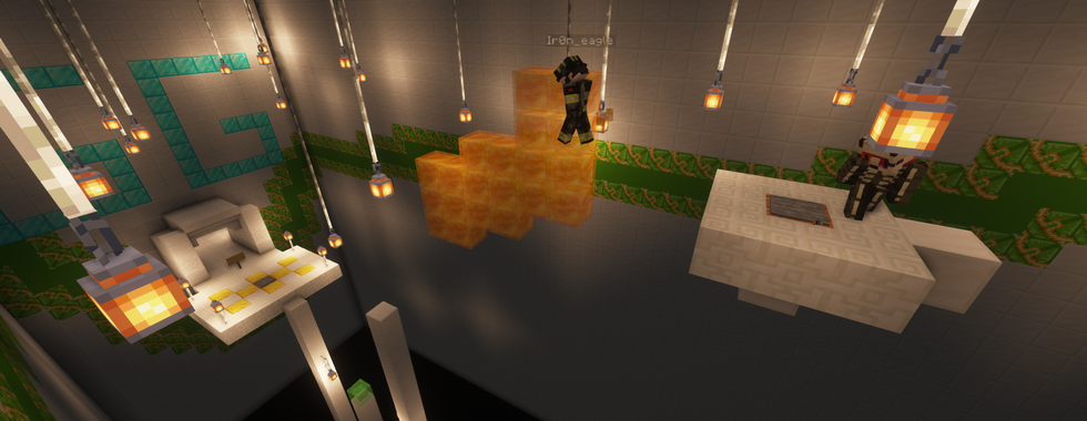 Une arène pour accueillir une future salle des coffres (déjà construite) ajoutez à cela un chunk à slime et deux personnes qui font spawn des IronGolems pour assurer la sécurité et vous obtenez ceci !
